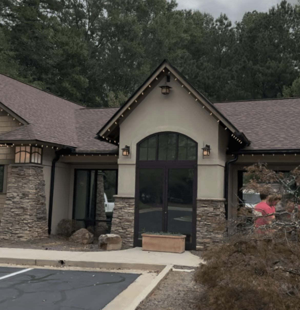 We put the Christmas lights on the building, the roof line, and the gutter line.